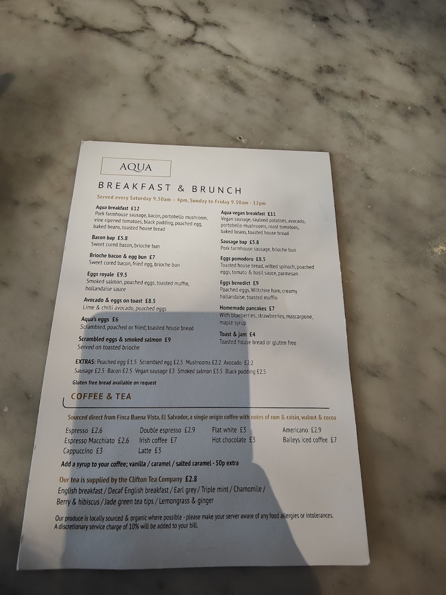 At Aqua Portishead, located on Martingale Way in the picturesque marina area, the menu is a celebration of delightful flavors and exceptional service. Whether you're starting your day with a classic Aqua Breakfast or enjoying a leisurely brunch, the variety accommodates every palate. From the robust Espresso at £2.60 to the luscious homemade Pancakes at £7.00, each dish is prepared with fresh ingredients and a touch of creativity.
